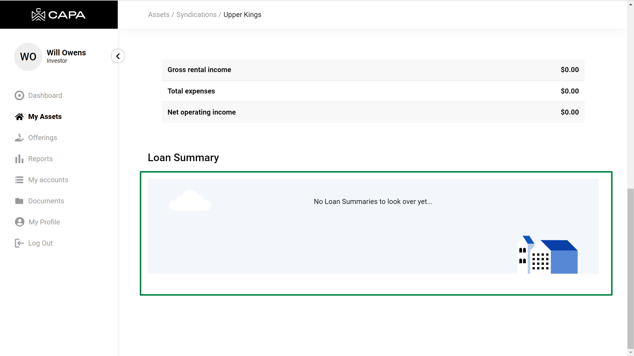 13.- In the Loan Summary section, view the summary of the loans associated with the Syndication Entity, if you do not have data, you will see the following screen.