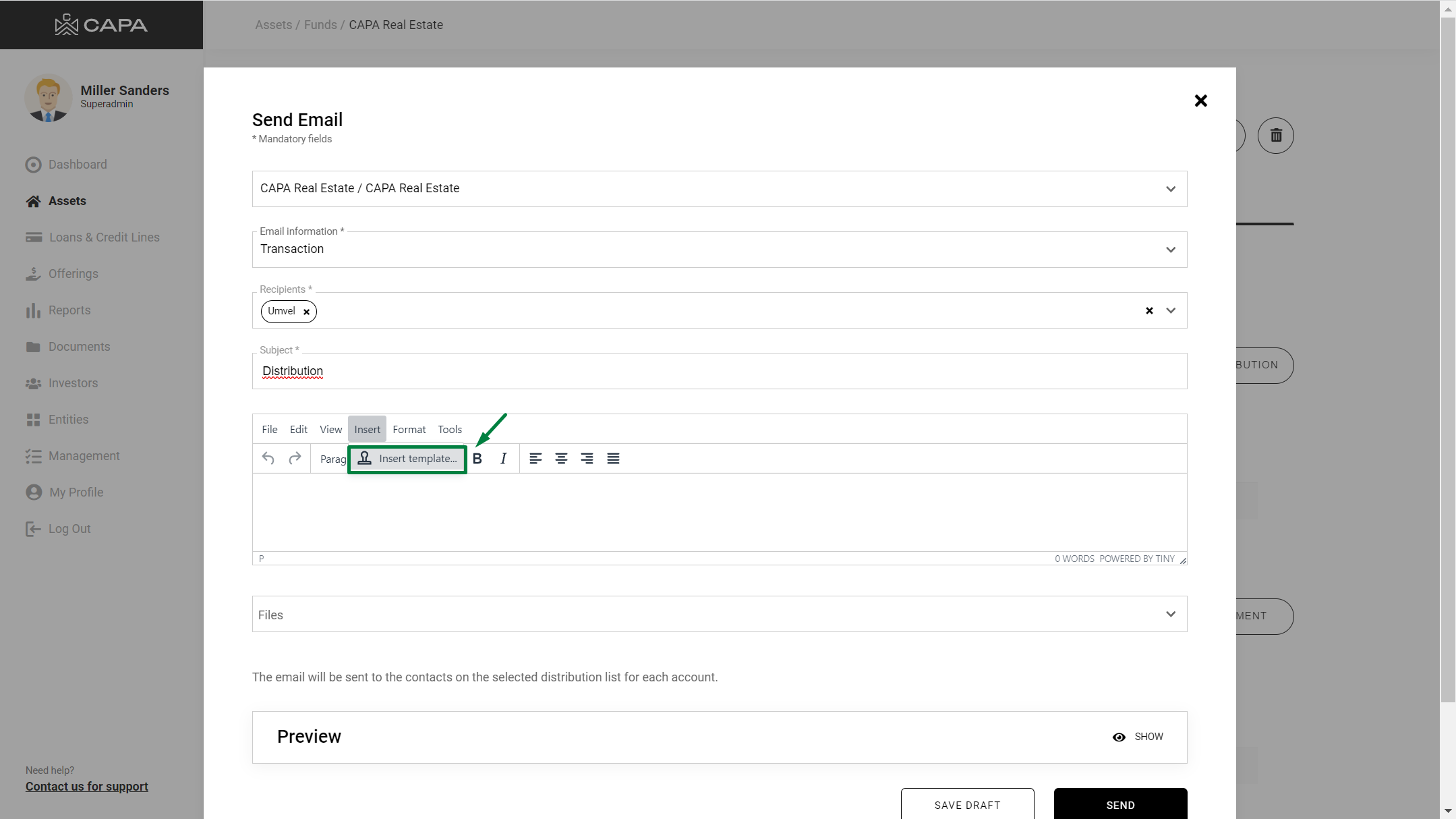 - Before sending the email, you can view the Preview by clicking on the "Show" option or to not show it, click on the "Hide" option.
